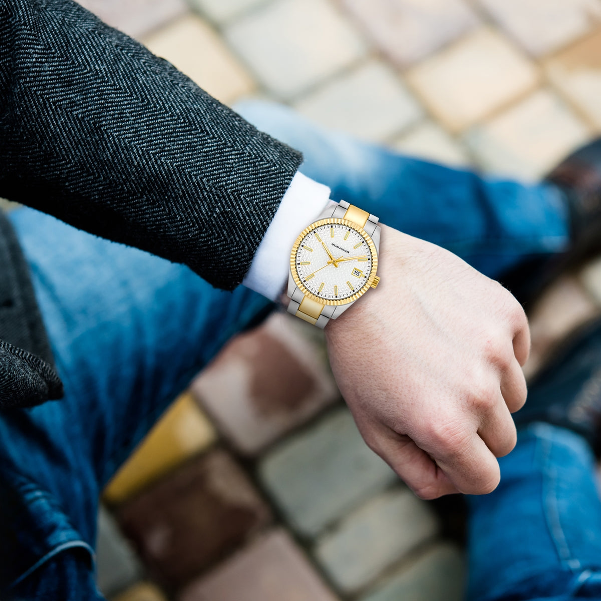 Herren Quarzuhr bicolor Edelstahl bicolor