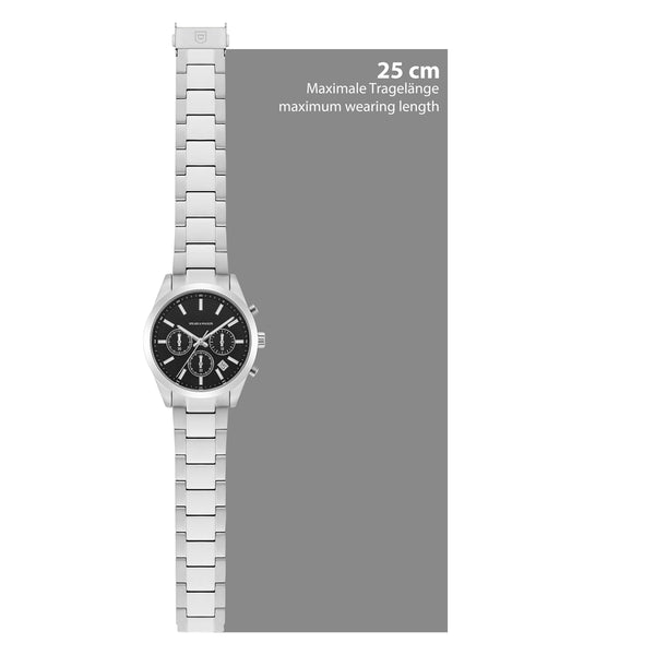 ALLGEMEINE INFORMATIONEN: Zielgruppe: Herren Armbanduhr: Chronograph Anzeige (Display): analog UHRWERK: Uhrwerk: Quarzwerk Herkunft Uhrwerk: Japan ARMBAND: Armbandmaterial: Edelstahl Armband-Beschichtung: keine Armbandoberfläche: poliert/satiniert Armband-Verschluss: Sicherheits-Faltschließe Armbandfarbe: silber Armbandlänge (mm) - ca.:...