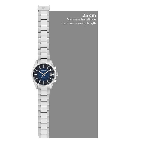 ALLGEMEINE INFORMATIONEN: Zielgruppe: Herren Armbanduhr: keine Sonderfunktionen Anzeige (Display): analog UHRWERK: Uhrwerk: Quarzwerk Herkunft Uhrwerk: Japan ARMBAND: Armbandmaterial: Edelstahl Armband-Beschichtung: keine Armbandoberfläche: poliert/satiniert Armband-Verschluss: Sicherheits-Faltschließe Armbandfarbe: silber Armbandlänge (mm) -...