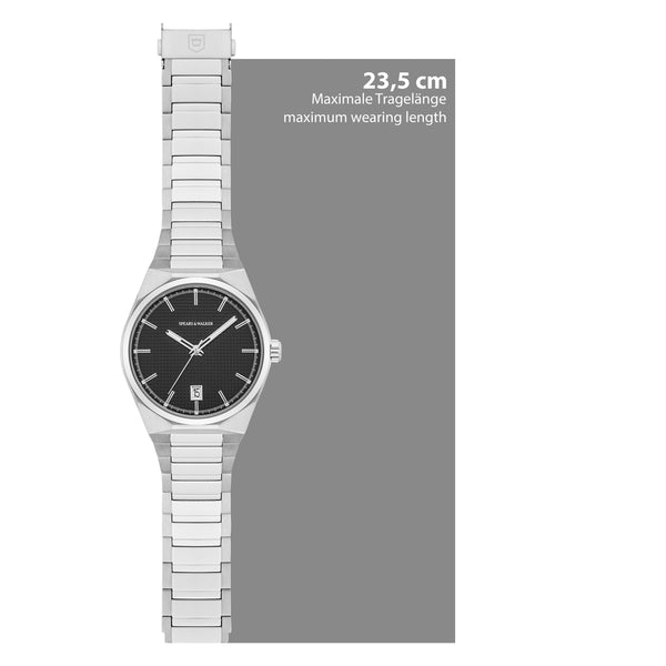 ALLGEMEINE INFORMATIONEN: Zielgruppe: Herren Armbanduhr: keine Sonderfunktionen Anzeige (Display): analog UHRWERK: Uhrwerk: Quarzwerk Herkunft Uhrwerk: Japan ARMBAND: Armbandmaterial: Edelstahl Armband-Beschichtung: keine Armbandoberfläche: poliert/satiniert Armband-Verschluss: Sicherheits-Faltschließe Armbandfarbe: silber Armbandlänge (mm) -...